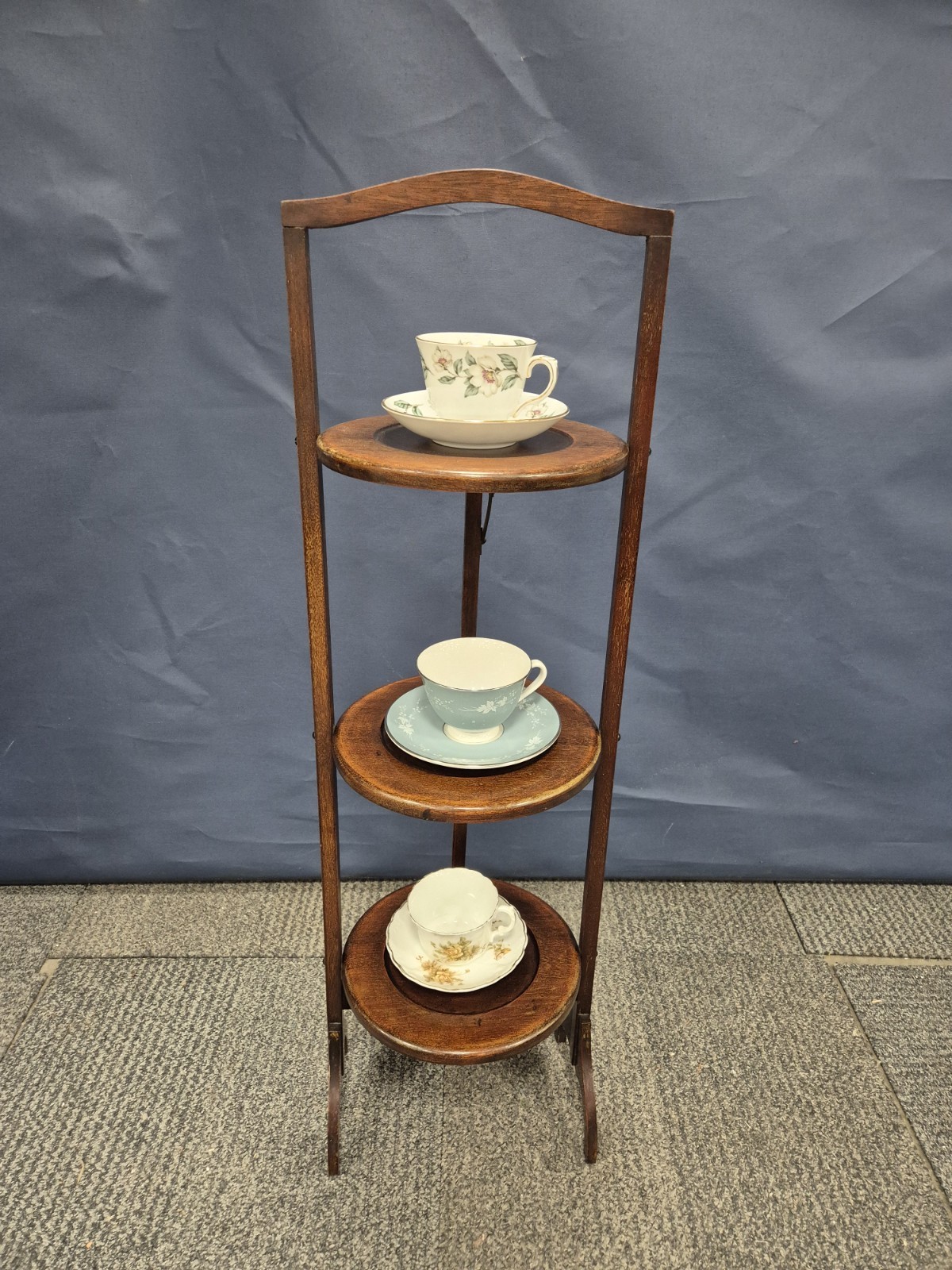 Antique Oak Three Tier Wooden Foldable Cake Stand
