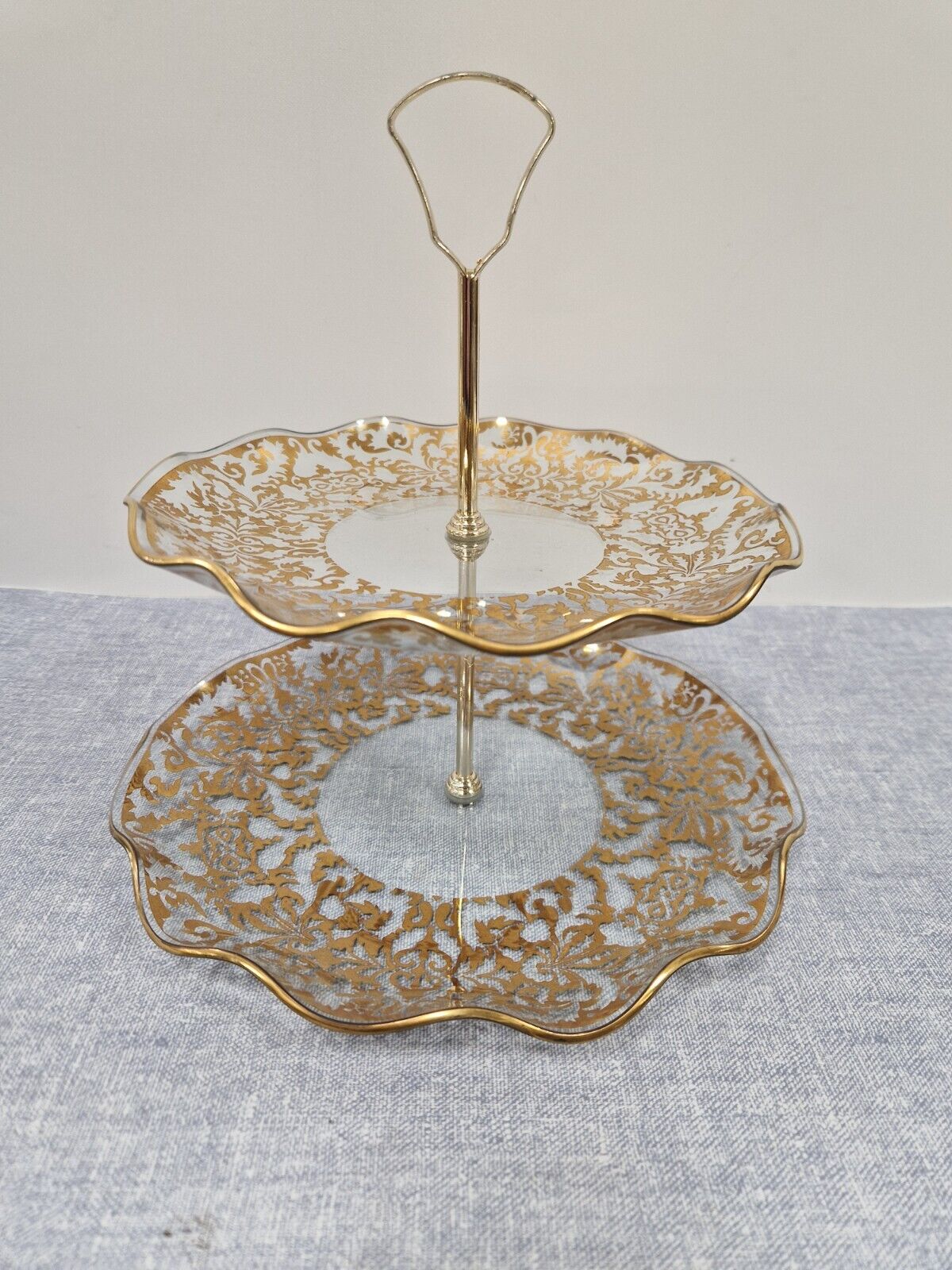 Chance Glass Two Tier Glass Cake Stand 1950s