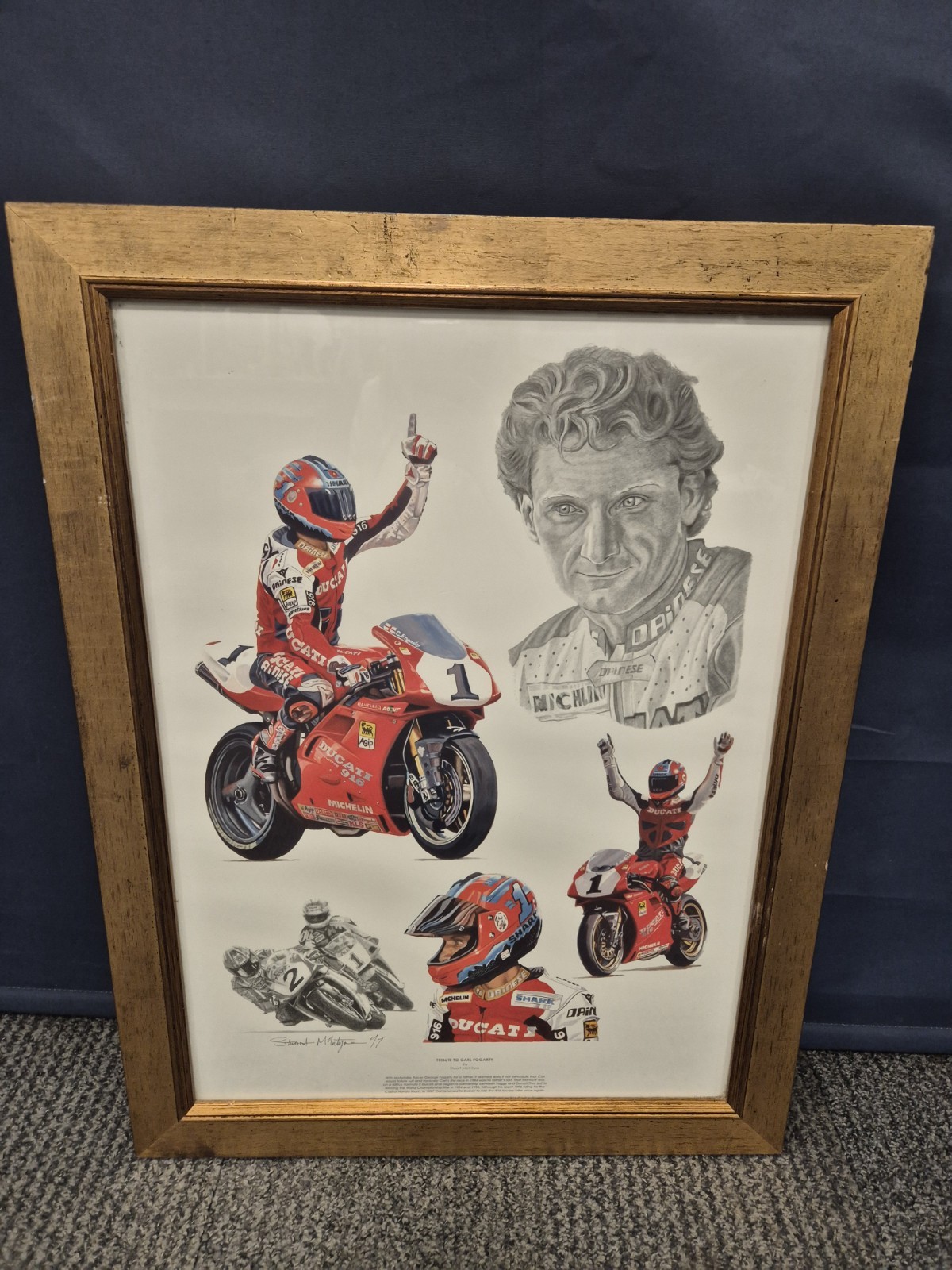 Framed Tribute to Carl Fogarty by Stuart McIntyre 1997