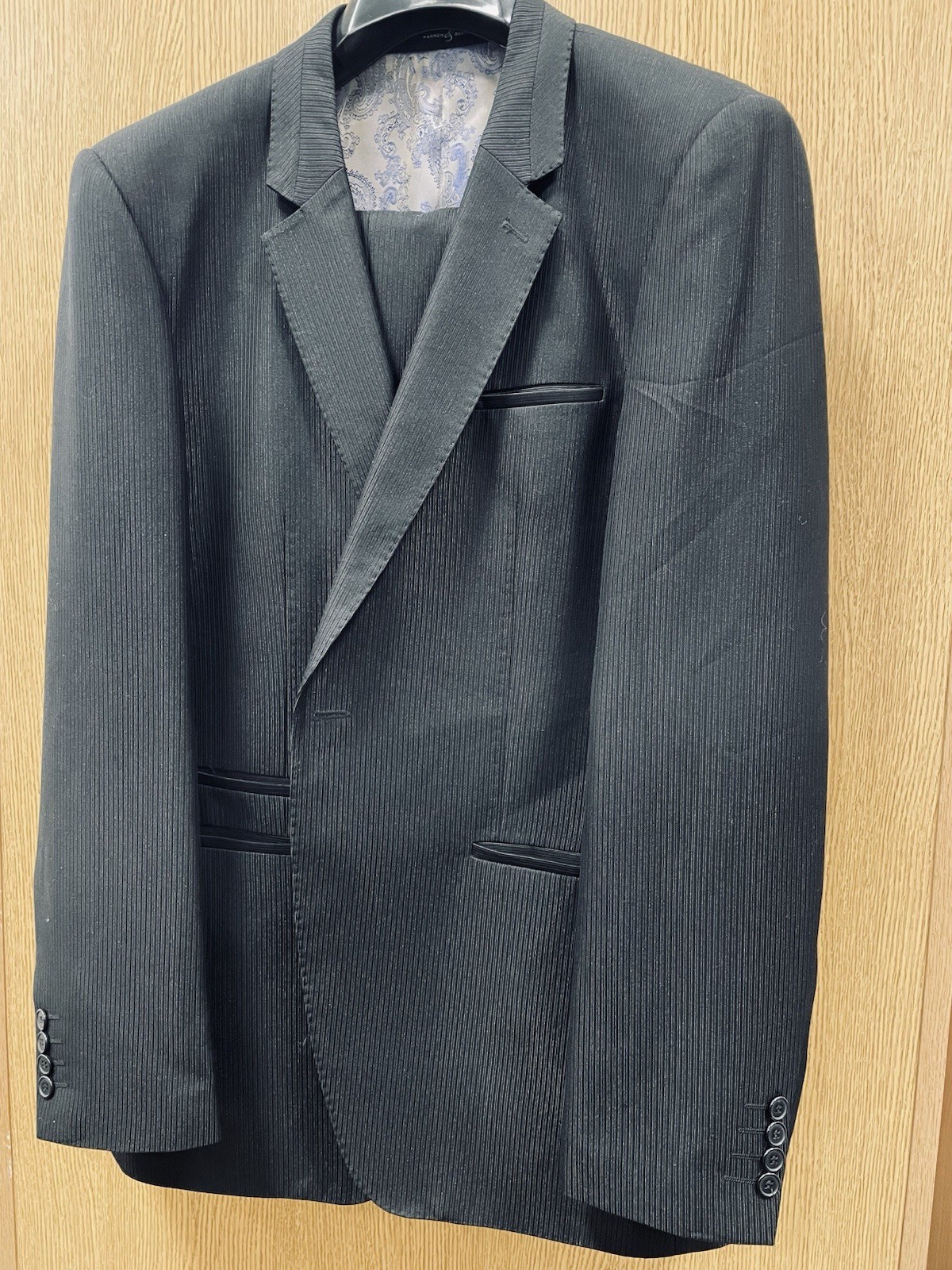 Harrow & Smythe Mens 2 Piece Suit Black Ribbed Texture Size 48 Chest 40 Waist
