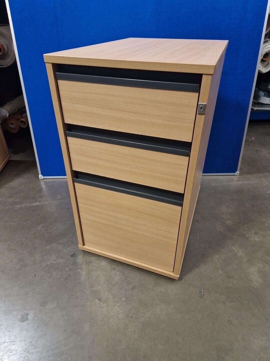 Maple Veneer And Black Plastic 3 Door Office Pedestal