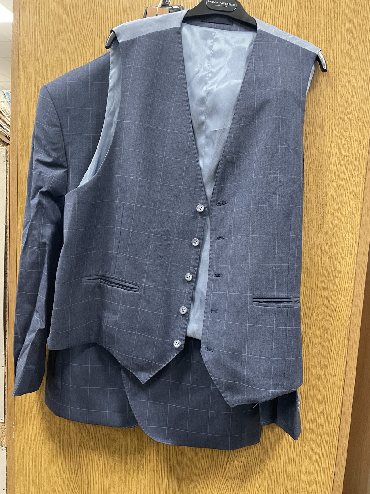 Men’s Brook Taverner Blue Jacket & Waistcoat Super 100’s Merino Wool 46S