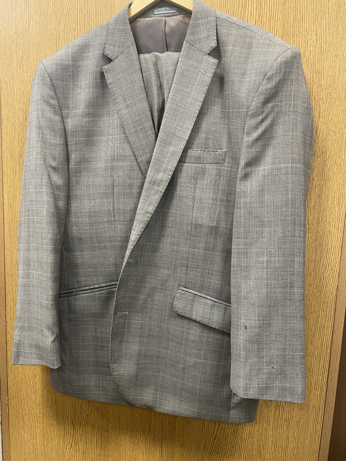 Samuel Windsor Pure Wool Mens 2 Piece Suit color Grey Check 44S 42w 29 Leg