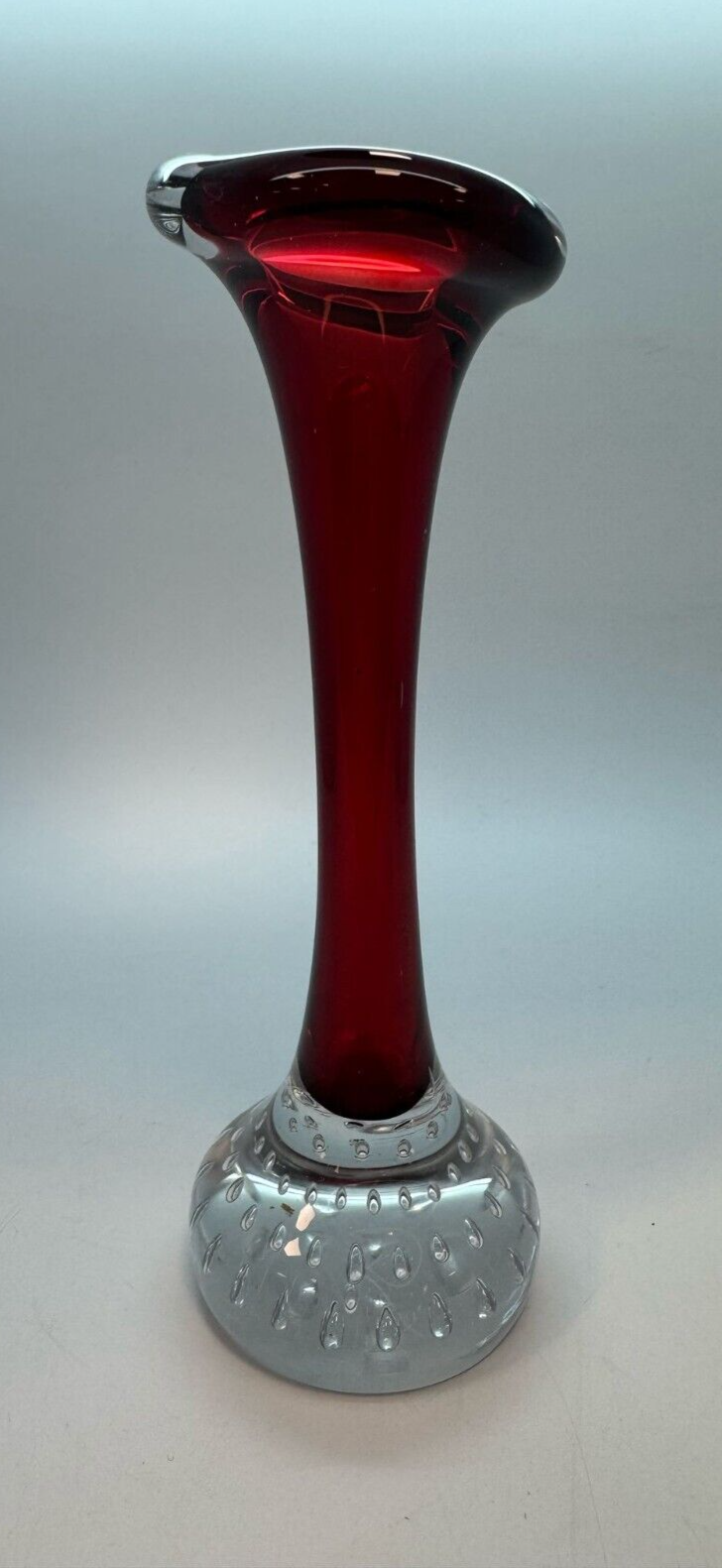 Vintage Swedish Murano Style Red Glass Bubble Vase