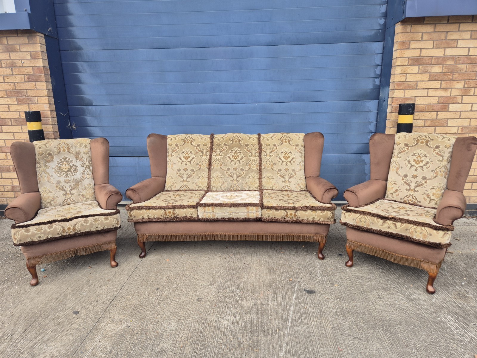 Vintage Wingback Sofa And Two Matching Wingback Chairs – Needs Reupholstering